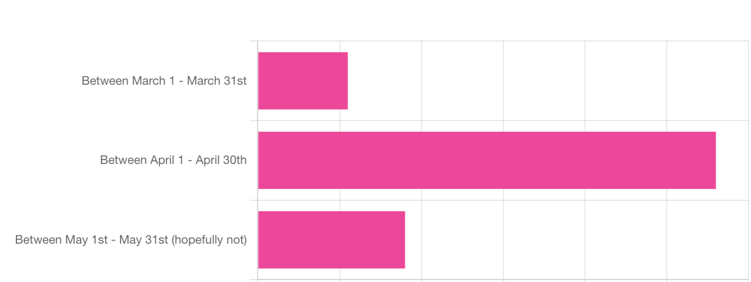 But first, we know youâve been waiting all weekend to find out when âreal springâ is going to start in Vancouver. A whopping 65% of you think that âreal springâ will happen between April 1st and April 30th. As for the 21% of you that think it wonât start until 5/1 - 5/31âŚwho hurt you?!